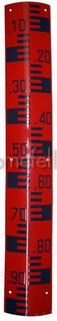 - เเผ่นระดับน้ำหมายเลข / (แผ่นระดับน้ำชนิดศูนย์อยู่บน) เคลือบพื้นด้านหน้าด้วยสีแดง ช่องสเกลและตัวเลขเคลือบด้วยสีน้ำเงินแก่